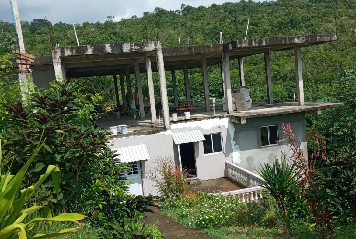 The mixed use residential and commercial building is a detached one-and-a-half-storey concrete structure with a roof deck to accommodate a 5 bedroom on the upper floor.